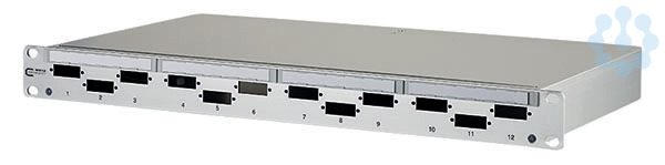 19 Zoll, 1HE LWL-Patchfeld für Festeinbau, unbestückt, Leichte Konstruktion mit Frontplatte und Gehäuse aus Aluminium, abnehmbare Frontplatte zur einfachen Adaptermontage, In der Rückwand befinden sich 10 Kabeleinführungsmöglichkeiten zur Aufnahme von 4x PG13,5-, 2x PG16/M20- oder 2x PG21/M25-Verschraubungen und zur Aufnahme von 2 Vorkonfektionierten Installationskabeln (VIK), servicefreundliche, rastbare Abdeckung, Sichtfenster für beiliegende Beschriftungseinlagen, Aufnahmemöglichkeit von bis zu 4 Spleißkassetten und 1 Spleißkassettendeckel