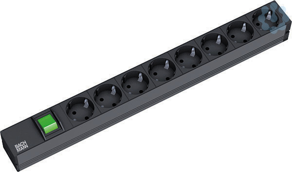 19° - Steckdosenleiste ALU 1HE 8-fach Schutzkontakt schwarz mit Schalter grün. Profil: ALU 1HE schwarz, Länge: 438,5mm. Endstücke genietet, nicht öffenbar. 2m HO5VV-F 3G1,50mm² 2,0m H05VV-F 3G1,50mm² schwarz mit Schutzkontaktwinkelstecker. inkl. Befestigungswinkel Schrauben. verpackt im Polybeutel.