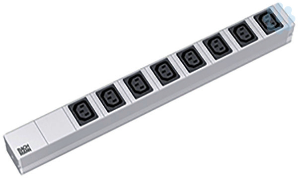 19° - Steckdosenleiste ALU 1HE 8-fach IEC320-Kaltgerätedosen schwarz. mit 10A Feinsicherung. Profil:ALU 1HE Länge:438,5mm. Endstücke genietet, nicht öffenbar. 2,0m H05VV-F 3G1,0mm² schwarz mit IEC-Kaltgerätestecker C14 eingespritzt. inkl. Befestigungswinkel mit Schrauben. im Polybeutel.