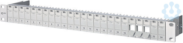 19 Zoll 1HE Modulträger für 24 Einzelmodule in Keystonebauform, Modulträgerfront aus silber eloxiertem Aluminium, Modulhalter aus Kunststoff mit Staubschutzklappen (weitere Farben als Zubehör erhältlich) nach vorne entnehmbar, integrierte Kabelabfangung, zusätzliche Zugentlastung möglich, Sichtfenster für beiliegende Beschriftungseinlage, Beschriftungsbogen 210 x 297 mm siehe Zubehör, Erdungsbolzen M6 x 10 mit Mutter und Zahnscheibe, inkl. 30 cm Erdungskabel, alle vollgeschirmten Module mittels Erdungsschiene verbunden