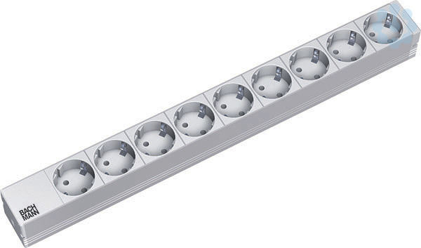 19°-Steckdosenleiste ALU 1HE 9-fach Schutzkontakt- -steckdose RAL 7035. Profil: ALU 1HE VM Länge: 437,4mm. 2,00 m H05VV-F 3G1,50 mm² mit CEE 7/7-Schutzkontakt-Winkelstecker incl. Befestigungswinkel mit Schrauben verpackt im Polybeutel
