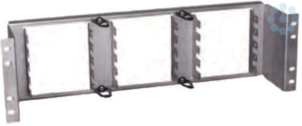 Zur Montage von LSA-Modulen 2/10, 3 HE, Seitenteile Stahlblech lackiert, RAL 7035 (lichtgrau, Version: Profil), Erdanschluss mit Mutter M6, Mantelkeilklemme für Schirmleiteranschluss, rückseitige Zugentlastungsschiene.