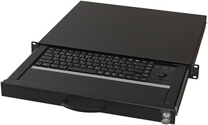 Sehr stabile Tastaturschublade inkl. Tastatur und Trackball Zum Einbau in 19 Schränke, kugelgelagerter Tastaturauszug Anschluss via USB und PS/2, Kabellänge 2 m Industrietastatur mit normal großen Tasten und Windows-Funktionstasten Integrierter optischer Trackball 14 mm mit 2 Maustasten Sicherheitsschloss mit zwei Schlüsseln, stabiler Handgriff aus Metall Lackierung RAL7035, lichtgrau / RAL9005, tiefschwarz Lieferung inkl. Montagematerial Optional: 2 x Montageschiene inkl. Schraubensatz zur zusätzlichen Befestigung an den hinteren 19 Profilen