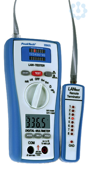 Bei diesem Prüfgerät handelt es sich um ein neu konzipiertes und sehr praktisches Prüfgerät, das ganz leicht die korrekte Stiftbelegung von Kabeln durch den Vergleich eines Übertragungssenders mit dem korrespondierenden Empfangsender misst. Problemlose Überprüfung von Kabeldurchgang, Open-, Short- und Cross-Connect.-Prüft die korrekte Stiftbelegung von 10 Base-T-Kabeln, 10 Base-2 Thin Ethernet-Kabeln, RJ45/RJ11 Modularkabeln, 356A-, TIA-568A/568B- und Token Ring-Kabeln usw.-Mit dem Remote-Kit können Kabel geprüft werden, die bis zu 300 m entfernt entweder installiert wurden.-Prüft auch das Schirmungskabel-Misst Gleich-/ Wechselspannung, Gleich-/Wechselstrom und Widerstand-Durchgangsprüfung mit Summer und Diodentest-Sicherheit: EN-61010-1. CAT III 600 V