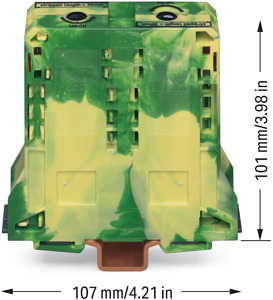 35 x 15. 2,3 mm dick. Kupfer. POWER CAGE CLAMP. 95,00 mm². grün-gelb
