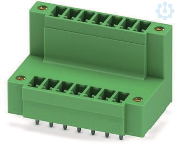 Leiterplattengrundleiste, Nennquerschnitt: 1,5 mm², Farbe: grün, Nennstrom: 8 A, Bemessungsspannung (III/2): 160 V, Kontaktoberfläche: Zinn, Kontaktart: Stift (male), Anzahl der Potenziale: 14, Anzahl der Reihen: 2, Polzahl pro Reihe: 7, Anzahl der Anschlüsse: 14, Artikelfamilie: MCDV 1,5/..-GF, Rastermaß: 3,81 mm, Montage: Wellenlöten, Pin-Layout: Lineares Pinning, Pinlänge [P]: 3,4 mm, Stecksystem: MINI COMBICON, Verriegelung: Schraubverriegelung, Befestigungsart: Gewindeflansch, Verpackungsart: verpackt im Karton, Bei Kombination mit MCV-Steckerteilen ist jeweils ein MCVW- und ein MCVR-Stecker zu verwenden.