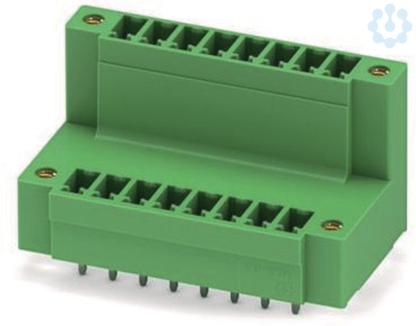 Leiterplattengrundleiste, Nennquerschnitt: 1,5 mm², Farbe: grün, Nennstrom: 8 A, Bemessungsspannung (III/2): 160 V, Kontaktoberfläche: Zinn, Kontaktart: Stift (male), Anzahl der Potenziale: 16, Anzahl der Reihen: 2, Polzahl pro Reihe: 8, Anzahl der Anschlüsse: 16, Artikelfamilie: MCDV 1,5/..-GF, Rastermaß: 3,81 mm, Montage: Wellenlöten, Pin-Layout: Lineares Pinning, Pinlänge [P]: 3,4 mm, Stecksystem: MINI COMBICON, Verriegelung: Schraubverriegelung, Befestigungsart: Gewindeflansch, Verpackungsart: verpackt im Karton, Bei Kombination mit MCV-Steckerteilen ist jeweils ein MCVW- und ein MCVR-Stecker zu verwenden.