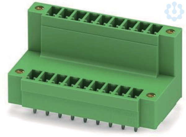 Leiterplattengrundleiste, Nennquerschnitt: 1,5 mm², Farbe: grün, Nennstrom: 8 A, Bemessungsspannung (III/2): 160 V, Kontaktoberfläche: Zinn, Kontaktart: Stift (male), Anzahl der Potenziale: 18, Anzahl der Reihen: 2, Polzahl pro Reihe: 9, Anzahl der Anschlüsse: 18, Artikelfamilie: MCDV 1,5/..-GF, Rastermaß: 3,81 mm, Montage: Wellenlöten, Pin-Layout: Lineares Pinning, Pinlänge [P]: 3,4 mm, Stecksystem: MINI COMBICON, Verriegelung: Schraubverriegelung, Befestigungsart: Gewindeflansch, Verpackungsart: verpackt im Karton, Bei Kombination mit MCV-Steckerteilen ist jeweils ein MCVW- und ein MCVR-Stecker zu verwenden.