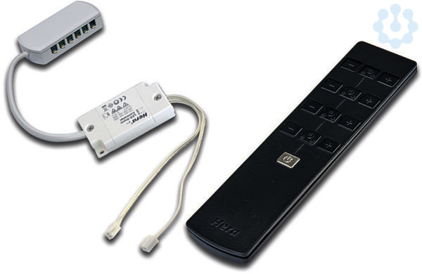 mit Memory-Funktion (nach Netztrennung wird der vorherige Dimmzustand wieder hergestellt), inkl. Batterie, Anschlussleitung mit zwei LED 24-Steckern und 12-fach Verteiler für die Leuchten