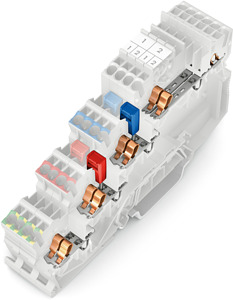 3-Leiter-Aktorenklemme. für NPN-(minus-)schaltende Aktoren. mit PE-Anschluss. mit farbig bedruckten Leitereinführungen. 1 mm². Push-in CAGE CLAMP®. 1,00 mm². grau