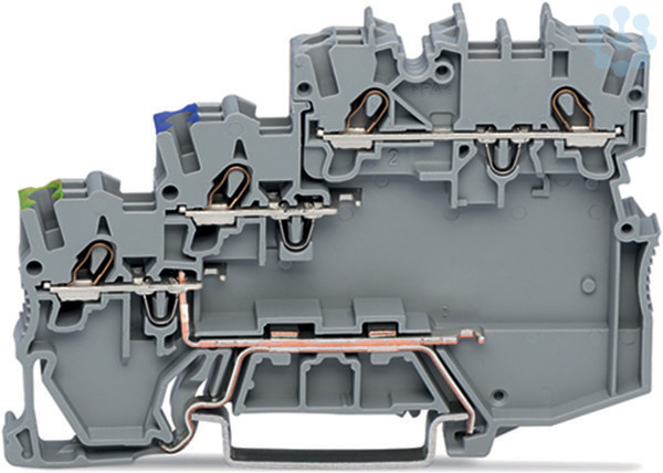 3-Leiter-Aktorenklemme. für PNP-(plus-)schaltende Aktoren. mit PE-Anschluss. mit farbig bedruckten Leitereinführungen. 1 mm². Push-in CAGE CLAMP®. 1,00 mm². grau