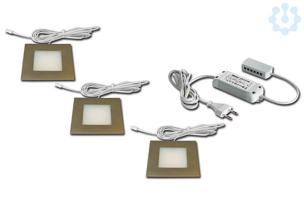 LED-Einbaustrahler mit Flächenlicht als 3er Set, Gehäuse Kunststoff, Anschlussleitung 2,5m mit LED 24-Stecker, incl. steckerfertigem 15W Trafo, Lichtfarbe warm weiß ca. 3000K, schnelle und einfache Montage durch Rasthaken, optionales Zubehör: Dimm-Controller mit Funkfernbedienung, DALI oder 1-10V Dimmer, Montagefeder zum Aufschrauben für den sicheren Halt in Leichtbaudecken, Aufbauring für die Montage ohne Einbaubohrung