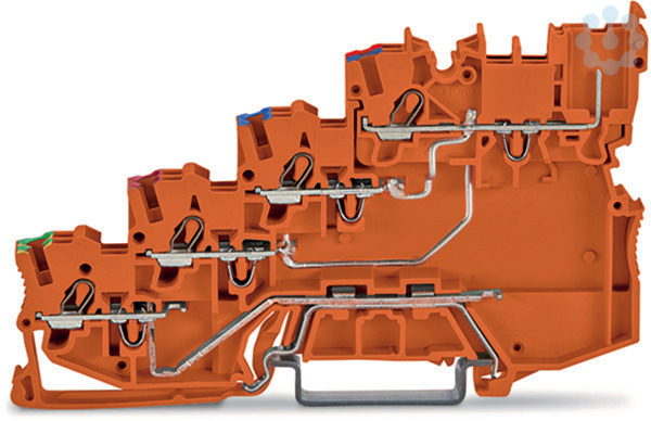 4-Leiter-Initiatoreneinspeiseklemme. für PNP (plus)-schaltende Initiatoren. mit PE-Anschluss. 1 mm². Push-in CAGE CLAMP®. 1,00 mm². orange