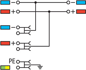 4-Leiter-Initiatoreneinspeiseklemme. für PNP (plus)-schaltende Initiatoren. mit PE-Anschluss. mit farbig bedruckten Leitereinführungen. 1 mm². Push-in CAGE CLAMP®. 1,00 mm². orange