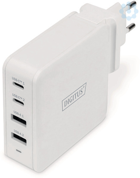 Mit dem DIGITUS® Universal Ladeadpater können zwei USB-C? und zwei USB A Geräte gleichzeitig geladen werden. Die Kompatibilität zu Power Delivery 3.0 (PD) macht schnelles Laden mit bis zu 100 W für beide USB-C? Ports und 30 W für beide USB A Ports möglich. Im Kombibetrieb stehen für USB-C? Geräte eine Leistung von 65 W zur Verfügung und für USB A Geräte 30 W gesamt. Laden Sie Tablets, Smartphones, mobile Spielekonsolen