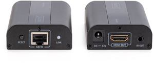 4K HDMI 2.0 Extender Set, UHD 4K*2K@60 Hz 30/60 m via Netzwerkkabel (Cat 6, 6a, 7),, Das Digitus 4K Extender Set, 4K2K/60Hz bietet eine Externderlösung bis 60 m für allerhöchste Ansprüche - sowohl für hochauflösende Grafikdarstellung als auch für absolut flüssige Videowiedergabe. Es überträgt digitale 4K2K/60Hz Video- und Audio-Signale auf eine maximale Länge von bis zu 30 m. 4K2K/30Hz-Inhalte können auf bis zu 60 m übertragen werden. Unterstützt werden CAT 6 sowie CAT 6A Netzwerkkabel. Es besteht aus einer Transmitter sowie- Empfängereinheit. Ebenso mitgeliefert werden zwei Infrarot-einheiten (Sender, Empfänger) über welche die Fernbedienung der angeschlossenen Eingangs-Quelle verwendet werden kann.