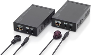 bietet eine Externderlösung bis 70 m für allerhöchste Ansprüche - sowohl für hochauflösende Grafikdarstellung als auch für absolut flüssige Videowiedergabe. Es überträgt digitale Video- und Audio-Signale auf eine maximale Länge von bis zu 70 m. 4K-Inhalte können auf bis zu 40 m übertragen werden, unter Verwendung eines CAT 6 Netzwerkkabels. Es besteht aus einer Transmitter sowie- Empfängereinheit. Ebenso mitgeliefert werden zwei bidirektionale Infrarot-einheiten (Sender, Empfänger) über welche die Fernbedienung der angeschlossenen Eingangs-Quelle verwendet werden kann.