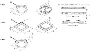 Einbau in isolierte Decken, Brandschutz "F mit Dach"