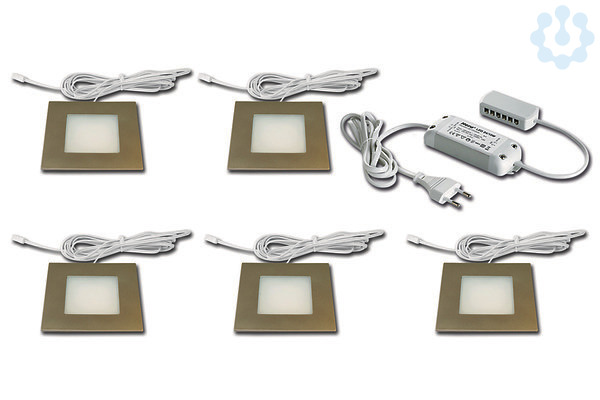 LED-Einbaustrahler mit Flächenlicht als 5er Set, Gehäuse Kunststoff, Anschlussleitung 2,5m mit LED 24-Stecker, incl. steckerfertigem 30W Trafo, Lichtfarbe neutral weiß ca. 4000K, schnelle und einfache Montage durch Rasthaken, optionales Zubehör: Dimm-Controller mit Funkfernbedienung, DALI oder 1-10V Dimmer, Montagefeder zum Aufschrauben für den sicheren Halt in Leichtbaudecken, Aufbauring für die Montage ohne Einbaubohrung