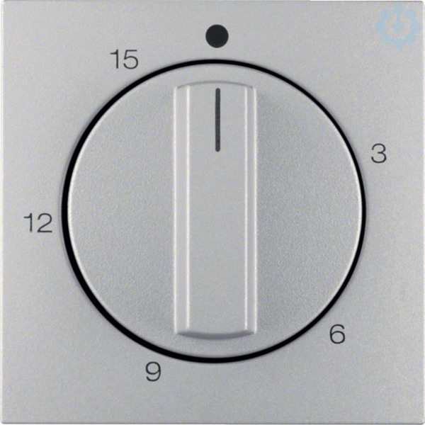 Zentralstück mit Regulierknopf für mechanische Zeitschaltuhr B.7 alu, matt. Zentralstück mit Regulierknopf für mechanische Zeitschaltuhr, mit Aufdruck, Laufzeit 15 Minuten. Unterputz-Installation, Standardprogramm. Material: Kunststoff, Duroplast, halogenfrei