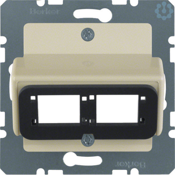 Zentralplatte für Doppelmodul Reichle&De-Massari weiß, glänzend. Zentralplatte für Doppelmodul IBM-ACS Typ C, Anschlussmodule RJ45 Cat.5 / Cat.6 oder für passende LWL-Module. Mit Tragplatte, 30° Schrägauslass, ohne Spreizkrallen. Hinweis: Nur mit Zwischenring des Schalterprogramms zu verwenden. Beschriftungsfeld einrastbar in passenden Zwischenring.