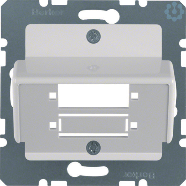 Zentralplatte für LWL-Kupplungen Duplex SC polarweiß, glänzend. Zentralplatte 1-/2fach für 1- oder 2 -LWL-Kupplungen Duplex SC. Mit Tragplatte, 30° Schrägauslass, Öffnung ausbrechbar, ohne Spreizkrallen. Hinweis: Nur mit Zwischenring des Schalterprogramms zu verwenden. Beschriftungsfeld einrastbar in passenden Zwischenring.