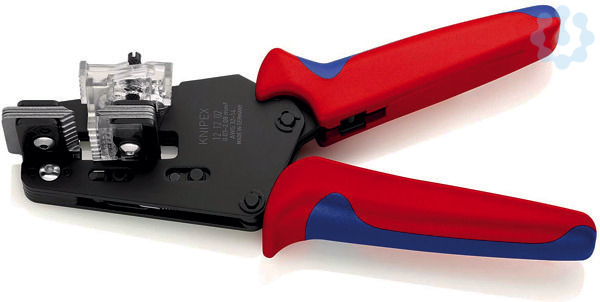 12 12 02 Präzisions-Abisolierzange Formschlüssiges Abisolieren auch von schwer zu entfernenden Isolierwerkstoffen aus PTFE, Silikon, Radox®, Kapton® und Gummi. auch mehrlagig. Ein zweites Messerpaar hält die verbleibende Isolierung zuverlässig fest. Genau auf den jeweiligen Leiterquerschnitt abgestimmte, auswechselbare Formmesser. Mit einstellbarem Längenanschlag für gleiche Abisolierlängen bei Serienarbeit. mit zusätzlicher Kabelführung für eine genaue Positionierung des Kabels an den Abisolierstellen der Messer. Kapton® ist ein eingetragenes Warenzeichen der E. I. du Pont de Nemours and Company. Radox® ist ein eingetragenes Warenzeichen der Huber & Suhner AG. - Abisolierwerte Quadratmillimeter: 0,03???0,09?/ 0,14?/ 0,38?/ 0,57?/ 1,0?/ 1,5?/ 2,08mm²