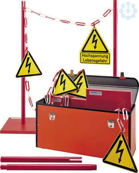 , ,Satz verschiedener Teile zum Sichern und Warnen von Unbeteiligten und zum Absperren von Arealen, Maschinen oder Maschinenteilen, wenn Hochspannungsprüfungen durchgeführt werden müssen