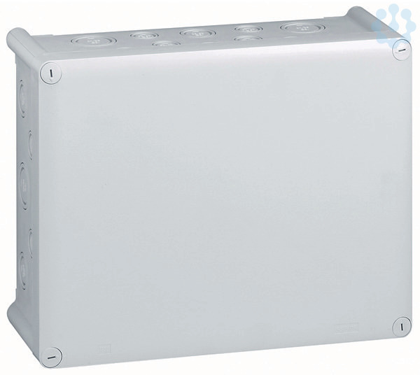 Legrand Abzweigdose Plexo. Rechteckig 310 x 240 x 124 mm (H x B x T), Schutzart IP 55 ? IK 07, mit Vorprägung für metrische Leitungseinführung, Deckel mit 1/4-Drehung Schnellverschluss, Lichtgrau RAL 7035, selbstverlöschend 750°C, beschriftbarer Deckel.