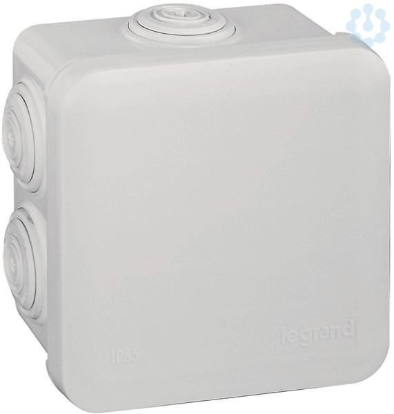 Legrand Abzweigdose Plexo. Quadratisch 80 x 80 x 45 mm (H x B x T), Schutzart IP 55 ? IK 07, 7 Membran-Einführungen, Deckel zum aufschnappen, Reinweiß RAL 9010, selbstverlöschend 650°C, beschriftbarer Deckel.
