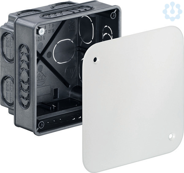 Unterputz Verbindungskasten, 87 x 87 x 60 mm, halogenfrei, mit Deckel, mit Geräteschrauben