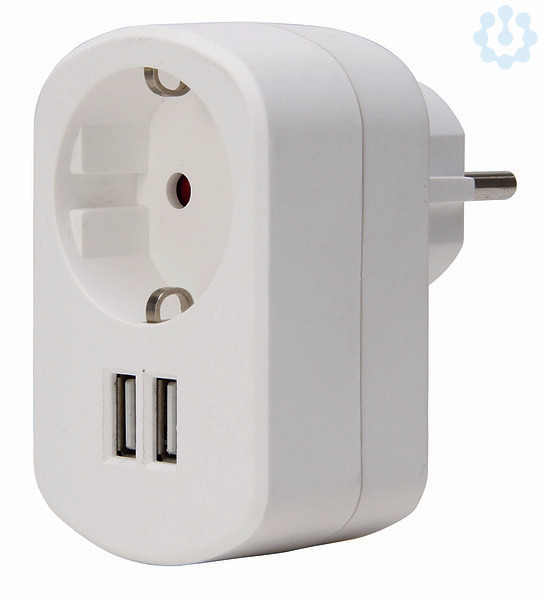 Adapter mit 2-fach USB max. 3,4A, DC 5V und Steckdose mit erhöhtem Berührungsschutz, Schutzart IP20, 16A, 250 V~, max. 3680W, Farbe: weiß