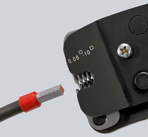 97 53 09 SB Selbsteinstellende Crimpzange für Aderendhülsen Zum Verpressen von Aderendhülsen nach DIN 46228 Teil 1 + 4. Selbsteinstellende Anpassung auf die gewünschte Aderendhülsengröße: keine Crimpfehler durch Verwendung des falschen Crimpeinsatzes. Frontale Einführung der Aderendhülsen in das Werkzeug. Gleichbleibend hohe Crimpqualität durch Zwangssperre (entriegelbar). Crimpdruck ist werkseitig präzise eingestellt (kalibriert). Kraftverstärkung durch Kniehebel für ermüdungsarmes Arbeiten. Hoher Bedienkomfort durch handliche Bauform und geringes Gewicht. Verpressung von 0,08 bis 10,0 mm² und 16,0 mm² in einem Profil. mit Wahlhebel zur Einstellung des Crimpbereichs 0,08 bis 10 oder 16,0 mm². auch passend für Twin-Aderendhülsen bis 2 x 10 mm², aber kleiner als Ø 6,6 mm (z. B. KNIPEX Art.-Nr. 97 99 377). SB-Karte/Blister. - Anwendung: Aderendhülsen - Kapazität Quadratmillimeter: 0,08???10?/ 16mm² - Anzahl der Nester: 1 - AWG: 28???6