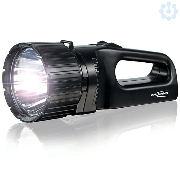 ANSMANN Handscheinwerfer Future HS1000FR betrieben mit LiIon-Akku mit 4400mAh Akku und den folgenden technischen Spezifikationen: Leuchtweite nach ANSI 650m bei 100% bzw. 300m bei 25%, Leuchtdauer 6h bei 100% bzw. 32h bei 20%, Lichtstrom 330lm bei 100% bzw. 67lm bei 20%, Helligkeit 150000 Lux bei 100% bzw. 22000 Lux bei 20% bei einem Gewicht von 656g. 1x LED 5,0 W, besonders geschützt Dank IP20, 2 verschiedene Leuchtfunktionen: 100% Leuchtkraft, 25% Leuchtkraft eine optische Fokussierung und dimmbar ideal für den Profi am Bau und in der Werkstatt, mit Netz-Ausfallelektronik, 3 Jahre Garantie