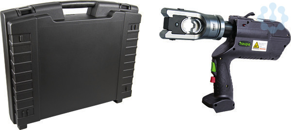 Akkuhydraulisches Presswerkzeug ?AH-12?, ohne Zubehör, im robusten Transportkoffer2 Stufenhydraulik für auswechselbare Presseinsätze, Presskopf 180° drehbar, manueller Rücklauf nach vollendeter Pressung, Leuchtdiode zur Akkukontrolle. Presswerkzeug für Tiefnut-Verpressungen ?DeepIndent?. Lieferumfang: 1 Crimpwerkzeug, 1 Tragegurt, im Kunststoffkoffer, ohne Einsätze. ? Presskraft kN: 120 ? Arbeitsdruck in bar: 700 ? Öffnung / Hub: 20 mm ? Kopf aufklappbar ? Pressbreite: breit ? Kabelschuhe: standard Cu 10-400 ? DIN Cu 10-300 ? DIN Al 16-240 ? Verbinder: standard Cu 10-400 ? DIN Cu 10-300 ? DIN Al 16-240 ? Presszeit akkubetrieben in Sekunden: 6-12 ? Doppelkolbenpumpe ? Gewicht in kg: 7 Mit den unterschiedlichen Farben der Sensor-LED wird angezeigt, ob die Verpressung erfolgreich beendet wurde oder welche Fehler aufgetreten sind: Licht grün: Verpressung normgerecht beendet, Motor gestoppt Licht orange: Akkuspannung nicht ausreichend Licht rot: Verpressung vorzeitig unterbrochen Das Gerät verfügt ebenfalls über 2