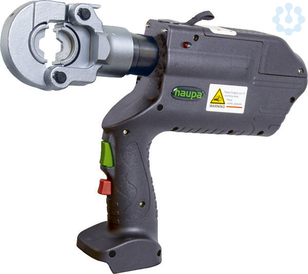 Akkuhydraulisches Presswerkzeug ?AO-6?, ohne Zubehör2 Stufenhydraulik für auswechselbare Presseinsätze, Presskopf 180° drehbar, mit Schnellöffnung, manueller Rücklauf nach vollendeter Pressung, Leuchtdiode zur Akkukontrolle. Lieferumfang: 1 Presswerkzeug, 1 Tragegurt, ohne Einsätze. ? Presskraft kN: 60 ? Arbeitsdruck in bar: 700 ? Kopf aufklappbar ? Öffnung / Hub: 17 mm ? Pressbreite: schmal ? Pressbereich Kabelschuhe: standard Cu 6-300 ? DIN Cu 6-300 / DIN Al 16-240 ? Pressbereich Verbinder: standard Cu 6-300 ? DIN Cu 6-300 / DIN Al 16-240 ? Presszeit akkubetrieben in Sekunden: 4 ? Doppelkolbenpumpe ? Gewicht in kg: 4,5 Mit den unterschiedlichen Farben der Sensor-LED wird angezeigt, ob die Verpressung erfolgreich beendet wurde oder welche Fehler aufgetreten sind: Licht grün: Verpressung normgerecht beendet, Motor gestoppt Licht orange: Akkuspannung nicht ausreichend Licht rot: Verpressung vorzeitig unterbrochen Das Gerät verfügt ebenfalls über 2 weiße LED zur Ausleuchtung des jeweiligen Arbeitsraumes.2 Stufe