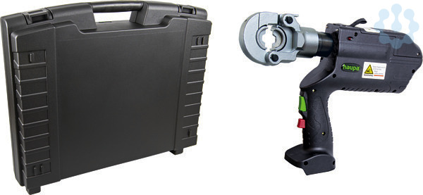 Akkuhydraulisches Presswerkzeug ?AO-6?, ohne Zubehör, im stabilen Transportkoffer2 Stufenhydraulik für auswechselbare Presseinsätze, Presskopf 180° drehbar, mit Schnellöffnung, manueller Rücklauf nach vollendeter Pressung, Leuchtdiode zur Akkukontrolle. Lieferumfang: 1 Presswerkzeug, 1 Tragegurt, im Kunststoffkoffer, ohne Einsätze. ? Presskraft kN: 60 ? Arbeitsdruck in bar: 700 ? Kopf aufklappbar ? Öffnung / Hub: 17 mm ? Pressbreite: schmal ? Pressbereich Kabelschuhe: standard Cu 6-300 ? DIN Cu 6-300 / DIN Al 16-240 ? Pressbereich Verbinder: standard Cu 6-300 ? DIN Cu 6-300 / DIN Al 16-240 ? Presszeit akkubetrieben in Sekunden: 4 ? Doppelkolbenpumpe ? Gewicht in kg: 4,5 Mit den unterschiedlichen Farben der Sensor-LED wird angezeigt, ob die Verpressung erfolgreich beendet wurde oder welche Fehler aufgetreten sind: Licht grün: Verpressung normgerecht beendet, Motor gestoppt Licht orange: Akkuspannung nicht ausreichend Licht rot: Verpressung vorzeitig unterbrochen Das Gerät verfügt ebenfalls über 2 weiße LED zur