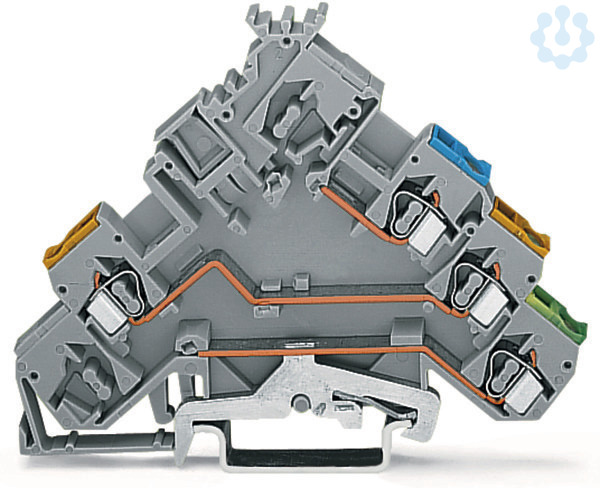 3-Leiter-Aktorenklemme. mit PE-Anschluss. mit farbig bedruckten Leitereinführungen. 2,5 mm². CAGE CLAMP®. 2,50 mm². grau