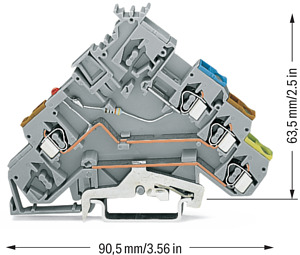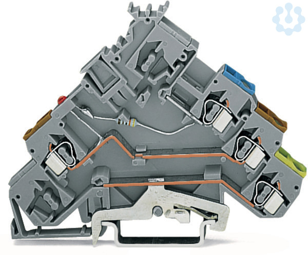 3-Leiter-Aktorenklemme. LED rot. mit PE-Anschluss. mit farbig bedruckten Leitereinführungen. 2,5 mm². CAGE CLAMP®. 2,50 mm². grau