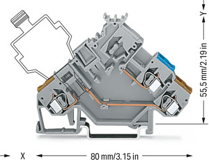 2-Leiter-Aktorenklemme. mit farbig bedruckten Leitereinführungen. 2,5 mm². CAGE CLAMP®. 2,50 mm². grau