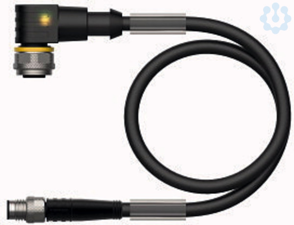 Aktuator- und Sensorleitung / PUR, Verbindungsleitung, Leitungslänge 1.5 m, M12-Kupplung, gewinkelt, 3-polig, mit 2fach LED (pnp, gelb, grün), M8-Stecker, gerade, 3-polig, Mantelmaterial: PUR, Mantelfarbe: schwarz, Schleppkettentauglich, Chemikalien-, UV- und ölbeständig, Flammwidrig (FT2 gemäß UL 1581, IEC 60332-2-2), Schweißfunkenbeständig, Halogen-, silikon-, PVC- und LABS-frei, Besonders abriebfest, Zulassung: cULus, RoHS-konform, Schutzart: IP67, IP69K, Leitungslänge: 1.5 Meter