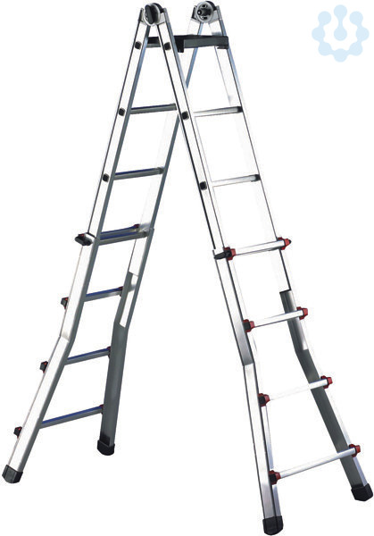 Höhenverstellbare Aluminium-Teleskop-Leiter flexibel einsetzbare 3-in-1-Aluminium-Sprossenleiter, die sowohl als Anlegeleiter, Schiebeleiter wie auch Stehleiter genutzt werden kann. Beide Leiternseiten sind getrennt voneinander von Sprosse zu Sprosse ausschiebbar, dadurch auch Einsatz auf geneigten Aufstellflächen und Treppen möglich. Leicht, handlich, einfach zu bedienen und in professioneller Ausstattung und Verarbeitung: maximale Tragfähigkeit 6 bis 9 Sprossen 150kg, 10 und 12 Sprossen 120kg, optimale Standsicherheit durch Gummifüße, kräftige Automatik-Gelenke aus Aluminium, absolut sicheres und Komfortables Arretieren der Leiter durch 4 Sperrelemente mit Federbolzen, Rasthaken und Abdeckungen aus bruchsicherem Kunststoff, mit praktischem Kunststoff-Werkzeughalter 310x260mm, durchgehend geriffelte, verbördelte Aluminiumsprossen, Sprossenbreite 27mm, Sprossenabstand 280mm, TÃ?V-GS-geprüft, Aluminium-Teleskop-Leiter mit 2x12 Stufen, Höhe min/max 1, 81m/6, 35m, Stehleiterhöhe 3, 10m, Gewicht 15, 0kg.