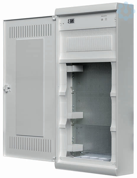 Multimedia-Kleinverteiler Aufputz, mit Mediatür. 1. Reihe Patch Panel für 12x Keystone Module . 2. - 4. Reihe Montageplatte gelocht, für Telekommunikations-Geräte,. 3-fach Schuko-Steckdose, . Mediatür oben und unten geschlitzt. Abmessungen B x H x T (mm) 300 x 370 x 106. TE je 18 mm 48/56. Reihen 2. Multimedia-Kleinverteiler Aufputz, mit Mediatür. Baureihe A..ATL / A..ATM. Schutzart: IP30. Verteiler-Bodenplatte aus Kunststoff, serienmäßig, sowie Vorprägungen für rückseitige und seitliche Leitungseinführungen . Vorprägungen für Kabelkanäle. Patch Panel 12-fach, aus Stahlblech. Farbton: RAL 9016 (verkehrsweiß). Gehäuse inkl. Tür (wahlweise mit Lüftungstür Typ ..TL, Mediatür Typ ..TM oder Volltür für APZ-Anwendungen). Mit Montageplatte gelocht für Telekommunikations-Geräte. Mit 3-fach Schuko-Steckdose. Mit Kabelabfangschiene zur Fixierung der Zu- und Abgangsleitungen. Mit Kabelhalter. Baureihe A..APZ. DIN Hutschiene. RJ45-Buchse. Geschlossene Abdeckung und Volltür.