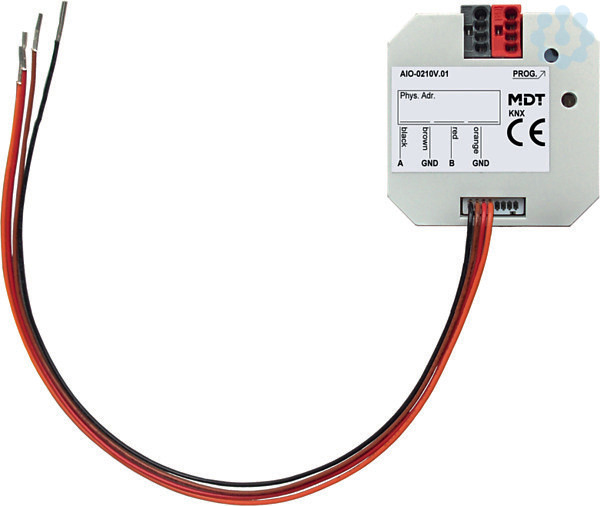 Analog I/O 2-fach, UP, 0-10V, Ein-/Ausgang umschaltbar. Geeignet als analoger Ausgang zur Steuerung von Lüftungsanlagen und anderen Geräten mit 0-10V Eingang. Ebenso geeignet als analoger Eingang zur Erfassung von Drehzahl oder anderen 0-10V Messdaten. Jeder Kanal kann unabhängig konfiguriert werden (Ein-/Ausgang). Ein-/Ausgänge galvanisch vom Bus getrennt. Ein-/Ausgänge galvanisch untereinander verbunden. Spannung für Ausgangsbetrieb wird im Aktor erzeugt. Keine externe Spannungsversorgung notwendig. Eingangsbetrieb 0-10V/2-10V oder 0-20mA/2-20mA (umschaltbar), Umrechnung von Messeinheit und DPT einstellbar, Min/Max Funktion, Drahtbrucherkennung, Schwellwert- und Ampelfunktion. Ausgangsfunktionen 0-10V: Steuerung über 1Byte, 2Byte oder 1Bit Objekte, Tag-/Nachtfunktion zur Begrenzung des Stellwertes, Notbetrieb bei Sollwertausfall. Einbau in die Schalterdose. Abmessungen (B x H x T): 41mm x 41mm x 12mm. Schneller Download der Applikation (long frame support für ETS5). 3 Jahre Produktgarantie.