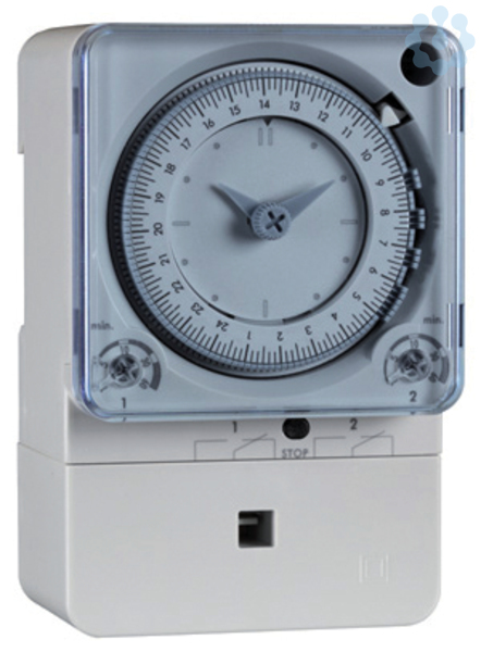 Legrand PolaRex QKT, analoge Abtauschaltuhr mit Quarzmotor (Ganggenauigkeit +/- 1 Sek/Tag, Gangreserve 100 Std.), 1 Kanal, Betriebsspannung 230 V 50/60 Hz. Schaltuhr mit Tagesscheibe und einstellbaren Kurzzeitprogrammen, Schaltzeit von 1 bis 60 Min. einstellbar. Die kürzeste Schaltfolge (Beginn einer Schaltzeit): 30 Min.. Montage auf Tragschiene EN 60715 oder Aufputz, Abmessung (HxB): 113,7 x 72 mm. Schaltausgang: 1 Wechsler.