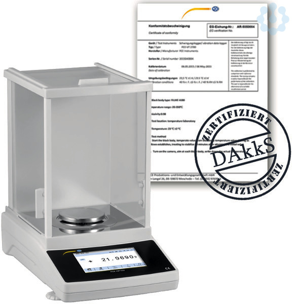 Die Analysenwaage ist eine hochpräzise Analysenwaage mit einem Messbereich von bis zu 220 g. Die Analysenwaage besitzt eine Auflösung von 0,1 mg. Auf Grund dieser geringen Auflösung können auch kleinste Luftverwirbelungen in einem Raum Einfluss auf das Wägeergebnis der Analysenwaage nehmen. Um dem entgegen zu wirken, ist die Analysenwaage mit einem Windschutz ausgestattet. Dadurch ist die Analysenwaage mit Touchscreen ideal für den Laborbedarf geeignet. Um eine präzise Wiegung mit der Analysenwaage durchzuführen, wird der Windschutz geöffnet, das Wägegut auf die Plattform gestellt und anschließend der Windschutz der Analysenwaage geschlossen. Die Wägeplatte der Analysenwaage besitzt einen Durchmesser von 80 mm, sodass z.B. im Labor verwendete Aluminiumproben- oder Petrischalen genau auf den Wägeteller passen. Um die hohe Genaugikeit der Analysenwaage auf Dauer sicherzustellen, ist die Waage mit einer internen Kalibrierfunktion ausgestattet. Dem Anwender der Analysenwaage stehen hier eine Einzelpunktkalibrie