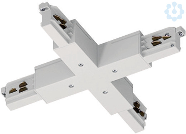 X-Verbinder mit Einspeisung, Material: Polycarbonat, kupferlegierte Kontakte, max. elektrische Belastung: Wechselstromnetz 3.6 kVA, Drehstromnetz 3 x 3.6 kVA = 10.8 kVA, Nennstrom und Nennspannung: 16 A / 440 V (1 A / 50 V AC FELV), werkzeuglose Einrastbefestigung, Schraubkontakte Normen: CE, ENEC, RoHS Abmessungen (LxBxH): 148 x 32 x 38 mm