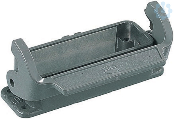 Anbaugehäuse, Baugröße: 16 A, niedrige Bauform, Längsbügel, Polycarbonat (PC), Edelstahl, Werkstoff Gehäuse: Aluminium-Druckguss, pulverbeschichtet, RAL 7037 (staubgrau), Werkstoff Dichtung: NBR, Schutzart: IP65