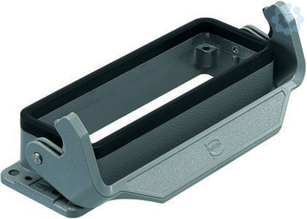 Anbaugehäuse, Baugröße: 24 B, niedrige Bauform, Längsbügel, Polycarbonat (PC), Edelstahl, Werkstoff Gehäuse: Aluminium-Druckguss, pulverbeschichtet, RAL 7037 (staubgrau), Werkstoff Dichtung: NBR, Schutzart: IP65