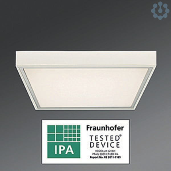 Stahlblechgehäuse, rechteckiger Querschnitt, Reinräume und Reinraumbereiche nach DIN 14644-1, gleichzeitig IPA zertifizierte Leuchte, geprüft für Reinraumanlagen gemäß ISO-KLASSE1 sowie chemischer und biologischer Beständigkeit auf Einzelkomponentenebene, Lichtverteilung direkt strahlend mittels diffus strahlendem, satinierten Diffusor aus Acrylglas mit Aluminiumrahmen natur eloxiert, Lichtfarbe neutralweiß (840) mit sehr guter Farbkonsistenz und hoher Farbwiedergabe Ra>80, Elektrischer Anschluss über 3-polige Anschlussklemme in Steckkontakt-Technik.